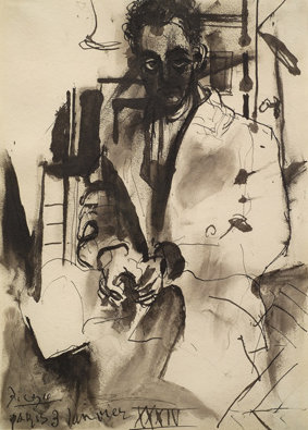 On the one hand, Man Ray was proud of the thoroughness and excellence of his training in academic draftsmanship and painting, as well as in mechanical drawing, but on the other, it has to be said that some of his works, especially drawings, create the impression that rendering from life did not seem to come naturally to him. Man Ray, as compensation for his academic training—or revolt—as much as from Dadaistic theory, undermined quality of material and execution in his work by resorting to handling which seems deliberately, even aggressively clumsy, the creation of collages and objects from found materials, and a contradiction of the notion of originality by, for example, photographing an assemblage of objets trouvés, which he subsequently destroyed. There is often an ambiguous, rather discomforting dialectic between the carefully lit and printed photograph and the annihilated original, some of which he reconstructed at a later date. His use of a mechanical medium like the airbrush further undermined the validity of the artist’s hand as manifested in unmistakably individual handling of materials. It is also worth noting that he took special pleasure in mechanical drafting while still a schoolboy and returned to it as a mature artist.