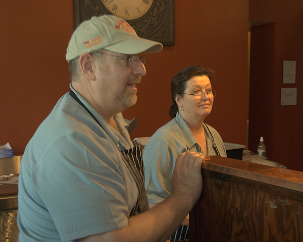 Leslie and Lou Ekus, Proprietors of the Holy Smokes BBQ Delicatessen in Turner's Falls, MA. Photo © 2010 Michael Miller.