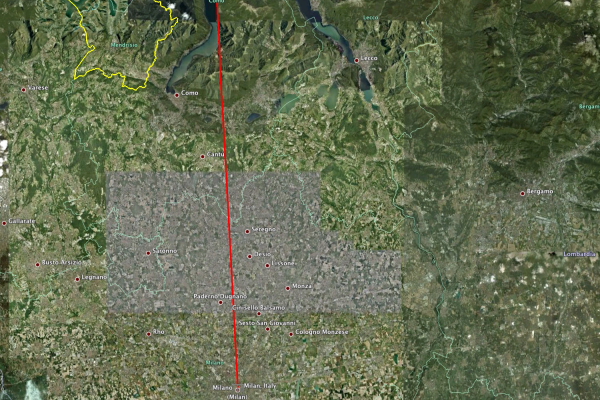 Even in Milan, which seems to sprawl more than almost any other continental city, the fifty kilometer line ends up at Lake Como.