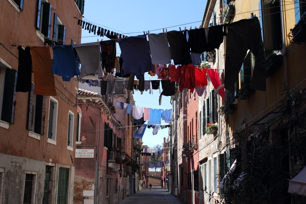 Venice may be beleaguered, but we’re still a long way from Disneyland. The Accademia is surprisingly peaceful, perpetually under renovation, no frills, and perhaps the best bargain in Europe. Venetians gather in various obscure campi spiritually distant from San Marco and yet often only a few steps from the congested passages which connect the familiar stations of the tourist cross. These are neighborhoods where old men gather in dusty social clubs, where children use precious monuments as backstops for their soccer balls. The livelier campi are bordered with serene Campari drinkers, sunned like pebbles on a beach, while small melancholy ones are barely large enough to frame the ubiquitous wellhead. The sight of laundry festooned across the wider lane ways (a human right denied, , to many apartment-dwellers in Sydney) makes it easy to wonder whether Venice is some kind of eco-city of the future which, far from being dead, is just playing possum until history again renders it indispensable. With so many old, naturally ventilated buildings and (almost) no cars, Venice may well have the lowest carbon footprint of any city in Europe.