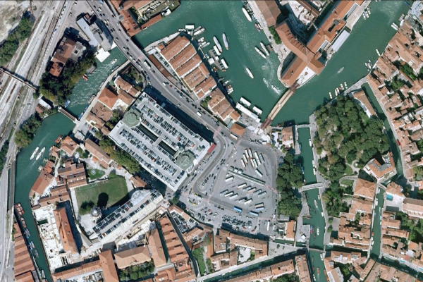 It seems that one of the dumbest decisions in the planning of Venice took place in the 1930s, when cars were allowed into the Piazzale Roma, where the causeway meets the city. From the point of view of land use and transport planning, the arrangement makes no sense. Cars drive over the three kilometer causeway, immediately park at great expense in one of the largest car parks in Europe, which takes up a substantial amount of well-located land. What I propose is a version of the peripheral car parks Louis Kahn proposed for Philadelphia. A large but groovy multi-deck car park should be built in Mestre, and all cars should be banned from the Piazzale Roma and the island of Venice. The car lanes on the causeway should be replaced by a high frequency tram service which terminates at a tram/vaporetto/shoe leather interchange in the now serene Piazzale Roma. A mixture of affordable housing for workers and students should be built in place of the car park, which currently takes up a huge amount of land by Venetian standards. A, um, toll on all visitors entering the city would be an entirely reasonable way to finance construction as well as restoration (at ten euro, assuming 20 million tourists, that’s 200 million euro per year). The project would involve the creation of an entirely new contemporary neighborhood in Venice, a dream project for the best architects, urban designers and landscape architects in the world. The shape of the Piazzale Roma could be tightened up, perhaps divided into a network of smaller campi by a new layout of lanes and open space designed in the spirit of the rest of the city. Alternatively the current car park, which has a certain rationalist grace, could be adapted into apartments, and the Piazzale kept as a large, unified space, shaded by trees and vines. The neighborhood could include facilities, such as a floating swimming pool and a place to ride bikes, missing in the rest of the city. The Calatrava Bridge would make sense in this context and nobody would dare call Venice dead ever again.