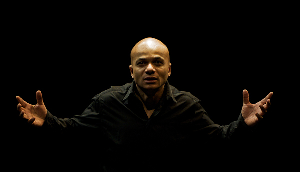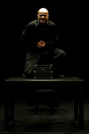 Omar Sangare founded the Dialogue One Festival for solo theatre in 2007 at Williams College, where he had just assumed a position as Assistant Professor of theatre studies. [about Dialogue One 2007 / about Dialogue One 2008: preview/review] Before that, he had built up a stellar reputation as a writer, poet, singer, and actor in his native Poland, receiving a Ph.D. from the theatre Academy in Warsaw, where he studied with the great film director, Andrzej Wajda, among others. His many talents came together in solo theatre, a field in which he is well-known in Central Europe and at international festivals. He was voted Best in Acting by the New York International Fringe Festival in 1997 for his one-man drama, True Theatre Critic. The same year Sangare was invited to the Jerzy Grotowski theatre in Wroclaw, Poland, where he won four prizes at the theatre Festival. The monodrama was presented also in Canada, England, Ukraine, Germany, and the United States, where it recently received the Best Performance Award at the San Francisco Fringe Festival.