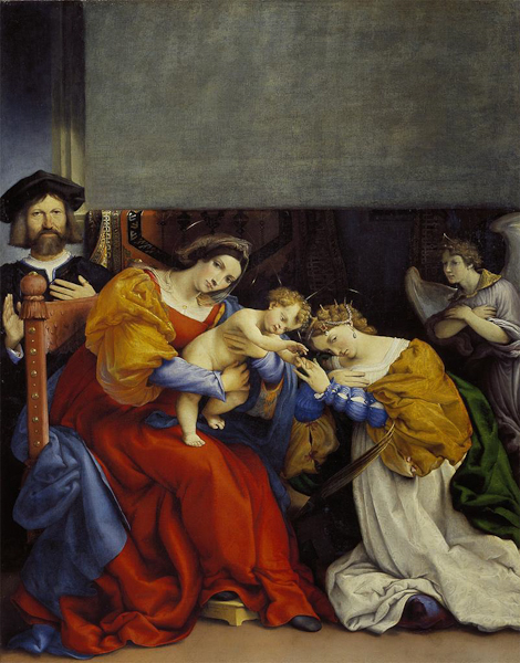 Lorenzo Lotto, Mystic Marriage of Saint Catherine, with the Donor Niccolò Bonghi, 1523. OIl on Canvas.
