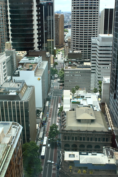 The most prestigious, and architecturally successful, of Sydney’s skyscrapers tend to cluster near Macquarie Street, along the ridge which marks the highest point in the CBD. Since Governor Macquarie built the first government house where the elegant office tower which bears his name now stands, this side of town has been the respectable civic end of downtown Sydney (as opposed to the western side of Circular Quay and the Rocks, where hangings took place in colonial times). This eastern ridgeline is where clean ocean breezes arrive downtown. A recent addition to the area is Deutsche Bank Place (2005), designed by Norman Foster. In Foster’s oeuvre Deutsche Bank Place seems at first glance a minor work. I’ve come to admire its crisp presence in the skyline, but compared to the work of Foster’s fellow Pritzker prize winner Renzo Piano at nearby Aurora Place, the unrelenting darkness of its tinted glass, and the dingy pseudo-public ‘outdoor room’ at its base seemed to indicate a lack of control or attention. Some more exuberant touches, such as the roof garden which would have justified the open ‘goal posts’ on the roof met their demise under the ‘delete’ keys of the value engineers.